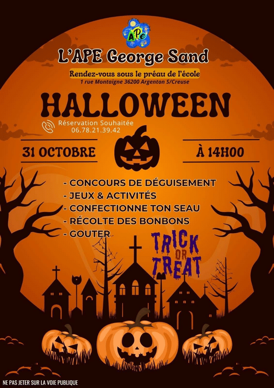L'APE de l'École George Sand organise un après midi "Halloween".