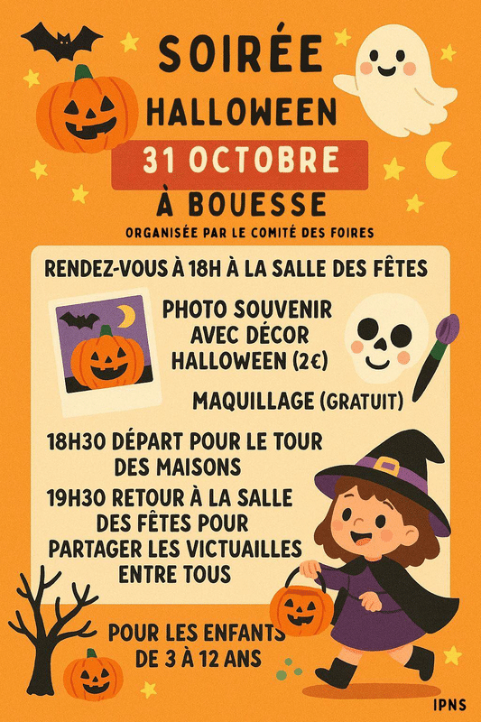 Soirée Halloween à Bouesse organisée par le comité des Foires. Pour les enfants de 3 à 12 ans.